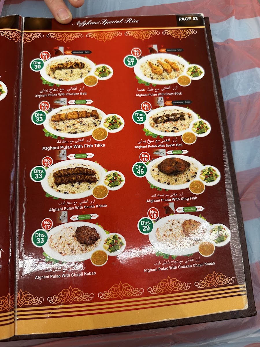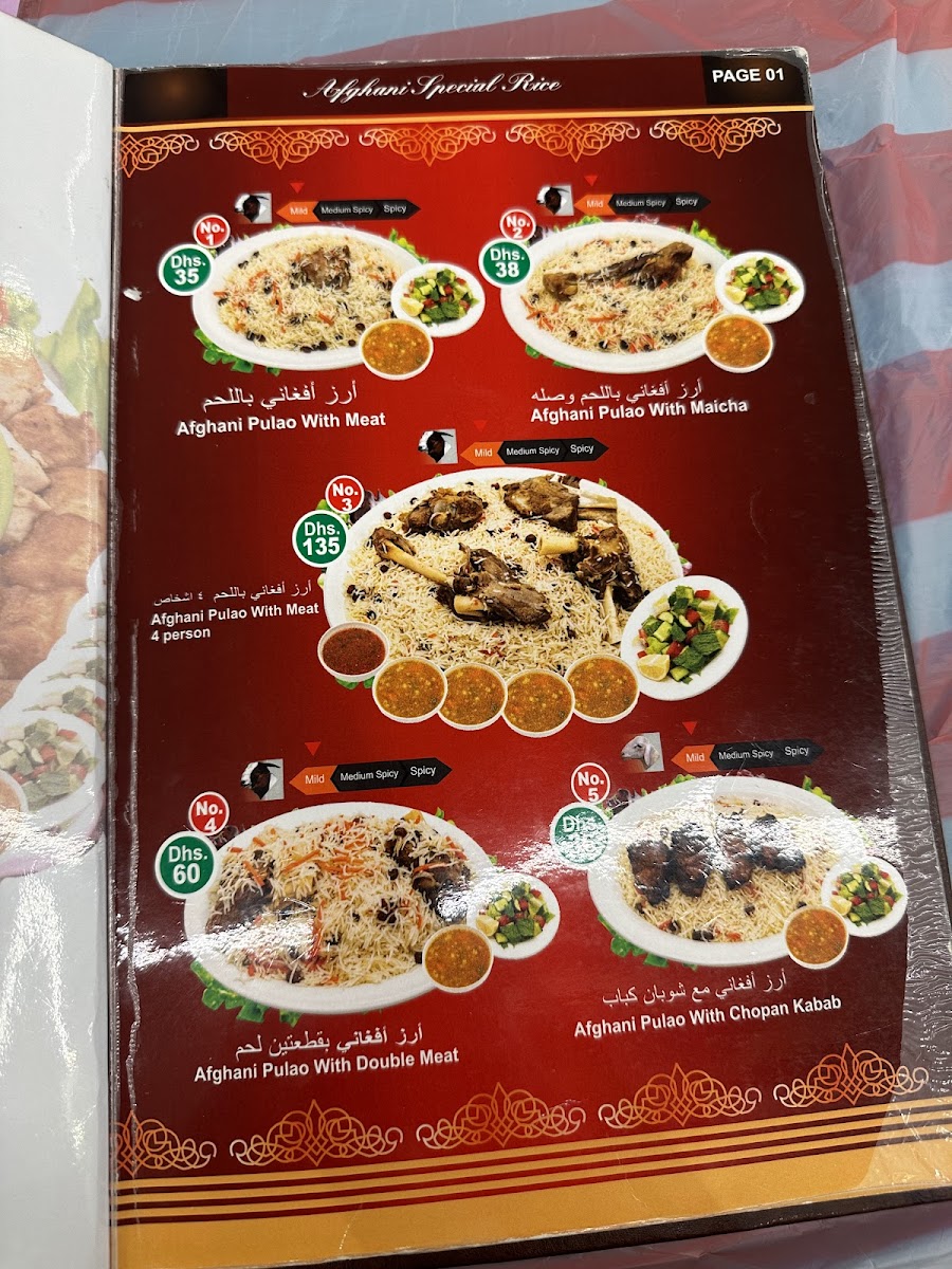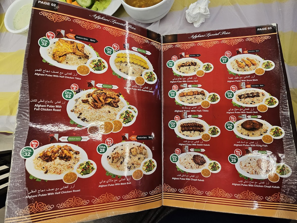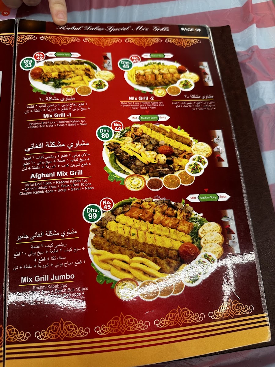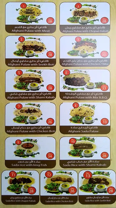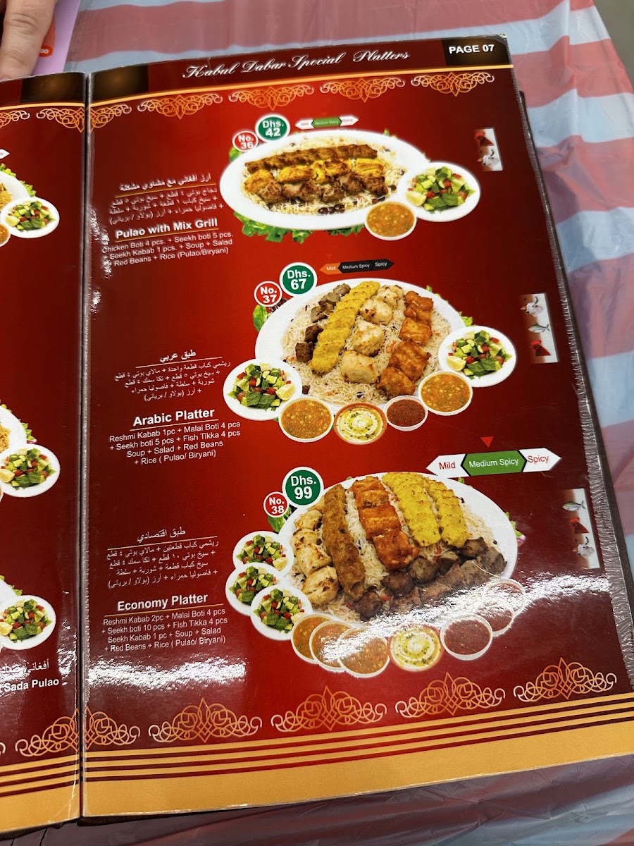 Kabul Darbar Restaurant - United Arab Emirates Menu